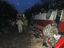 В Хмельницкой области съехал в кювет и перевернулся рейсовый автобус ''Икарус'', в котором находились 20 пассажиров. Инцидент произошел возле села Правдивка Ярмолинецкого района, на автодороге ''Черновцы-Хмельницкий'', сообщает .