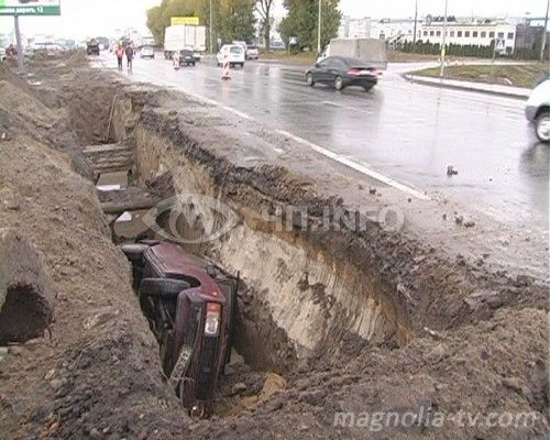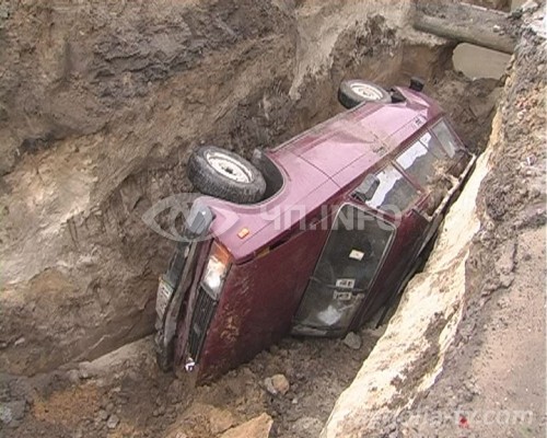 А мужчине, сидевшему за рулем ВАЗа, было не до объяснений. Его машина замерла в считанных сантиметрах от котлована.