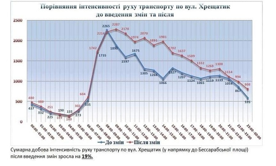 Создание наземного перехода рядом с ЦУМом на Крещатике критиковали водители, объясняя, что из-за него станет больше заторов. Однако по данным Центра организации дорожного движения, пропускная способность улицы наоборот выросла на 19%. При этом наземным переходом пользуются в пять раз больше людей, чем подземным.