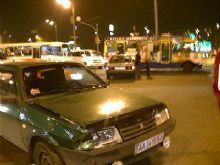 Водители побитых автомобилей ожидают приезда работников ГАИ.