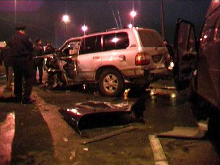 Вчера, в 16:30 в г. Днепропетровск, на мостовом переходе №2 через р. Днепр, водитель автомобиля BMW-750, местный дитель 1974 г.р., двигаясь в направлении пр. Воронцова, превысил установленную скорость и столкнулся с ''Жигулями'', которые ехали в попутном направлении.