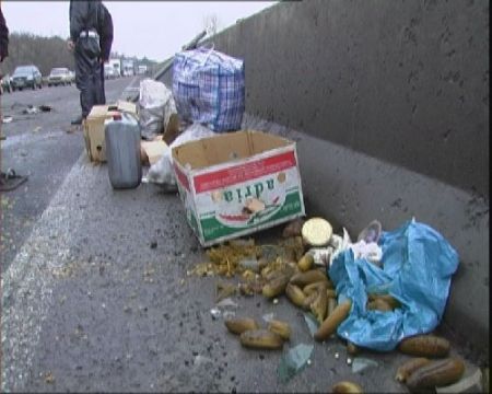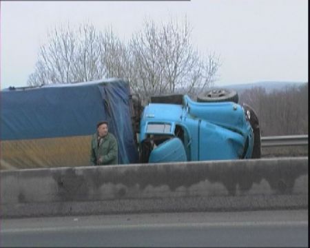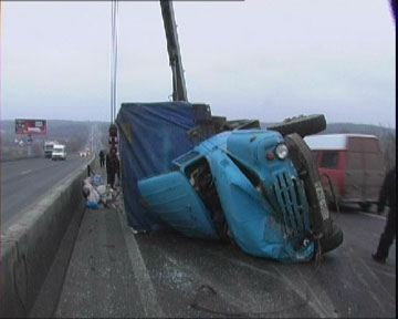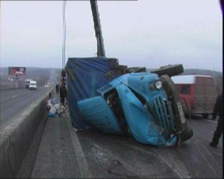 На одесской трассе, около с. Вита почтовая, перевернулся грузовик.