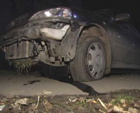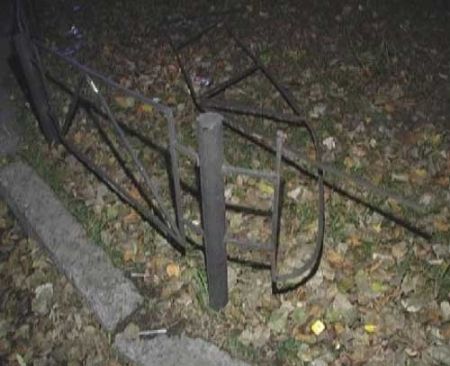На пересечении улиц Эжена Потье и Софьи Перовской "Опель" врезался в ограждение.