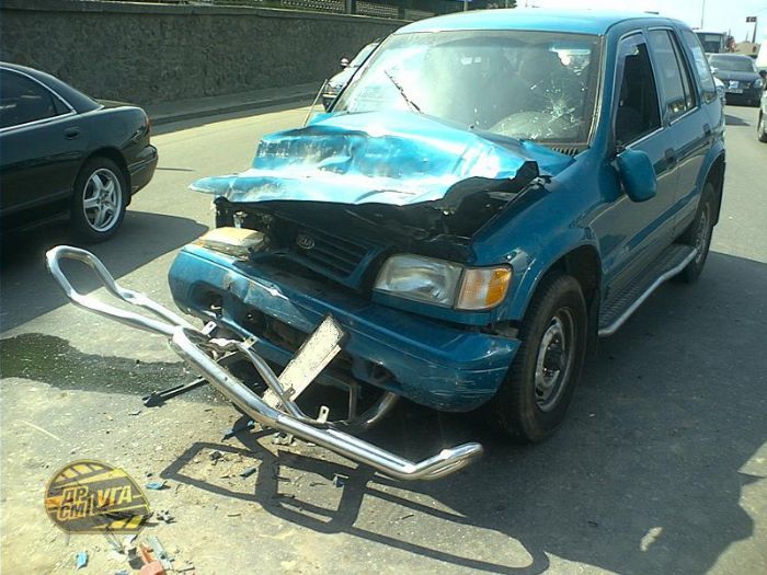 Джип ехал во второй полосе. Почему водитель Kia не остановился – пока неизвестно. Причину столкновения выяснит следствие. Но факт остается фактом: не сбавляя скорости Sportage врезался в мигающую аварийкой ГАЗель. При этом, у внедорожника уничтожена вся передняя часть, разбито лобовое стекло, сломан руль и т.д. А у ГАЗа полностью изувечен задок.