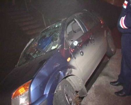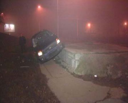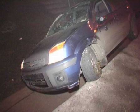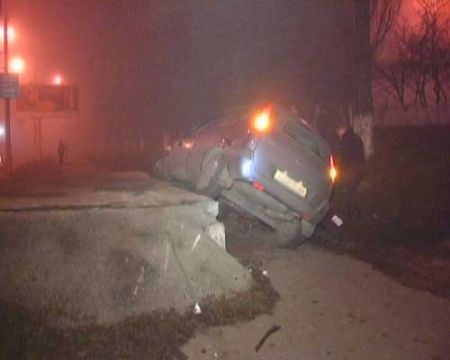 На проспекте 50-лет Октября из-за превышения скорости иномарка стала на два колеса.