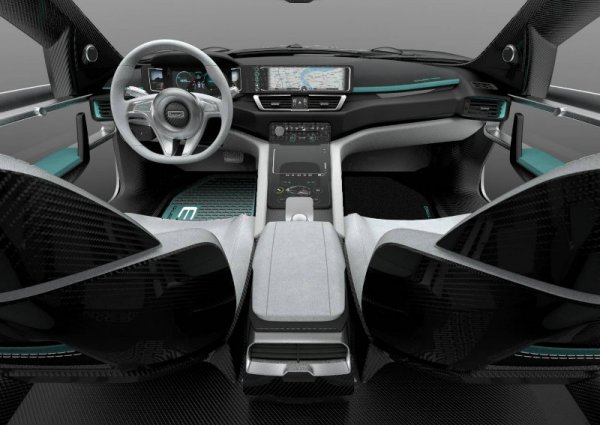 Салон у концепта четырехместный, с карбоновыми каркасами сидений. В интерьере можно подметить также почти полное отсутствие физических кнопок — все органы управления функциями реализованы с помощью сенсорных панелей.