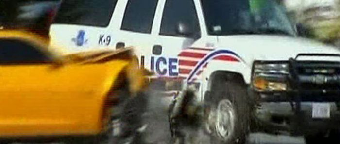 Интересно, что полицейский автомобиль не являлся участником фильма: офицер полиции ехал по вызову через огороженную для съемок площадку. Несмотря на включенные сигналы, прозвучала режиссерская команда "Мотор!", Camaro тронулся с места, набрал скорость и врезался в полицейский внедорожник. В результате ДТП полисмен попал в больницу.