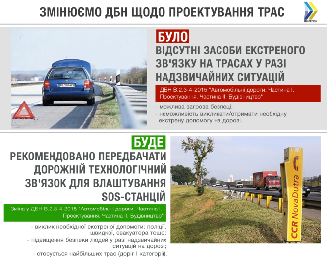 "Как правило, они устанавливаются каждые 500 м – 2 км вдоль трассы для вызова необходимой помощи: полиции, скорой или эвакуатора в случае экстренной ситуации на дороге. [Норма] касается нового строительства и реконструкции дорог I категории – это трассы международного значения", – сказано в сообщении.