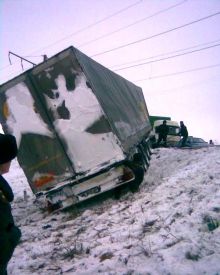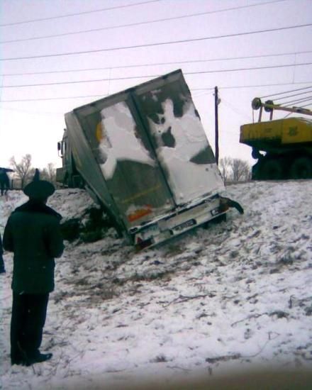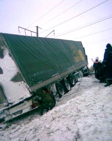 16 марта около 7:00 на Волыни в с. Козин Рожищенского района на железнодорожном переезде водитель автомобиля ''Мерседес Бенц 1843 LS'' с полуприцепом ''КOGEL SN-24'', двигаясь в направлении г. Луцка, не выбрал безопасную скорость, не учел состояние дорожного покрытия и ударился в ограждения железнодорожного переезда.