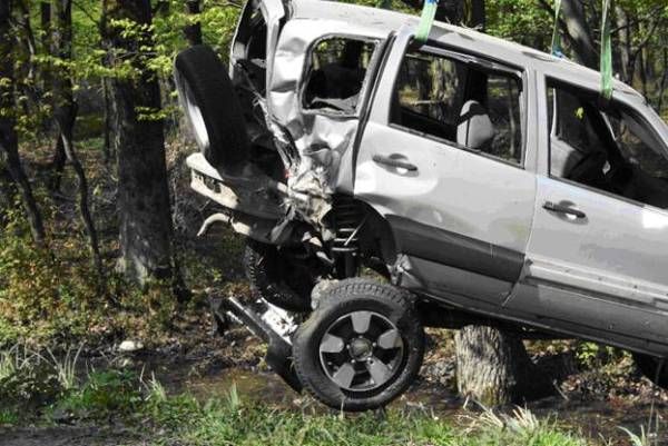 В результате сокрушительного удара Chevrolet Niva оказалась в кювете, а водитель вылетел из авто через заднее стекло.