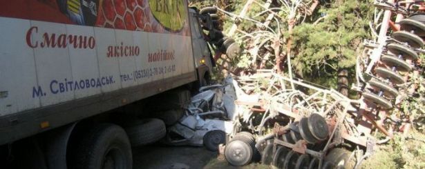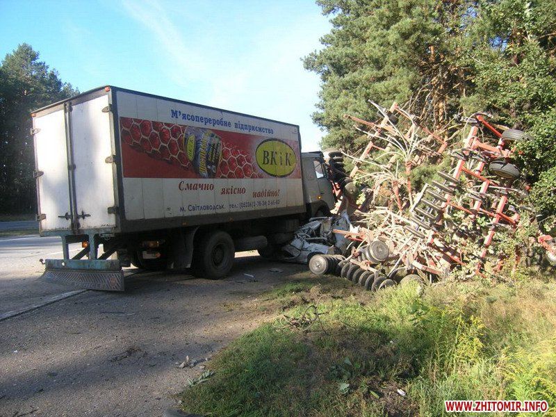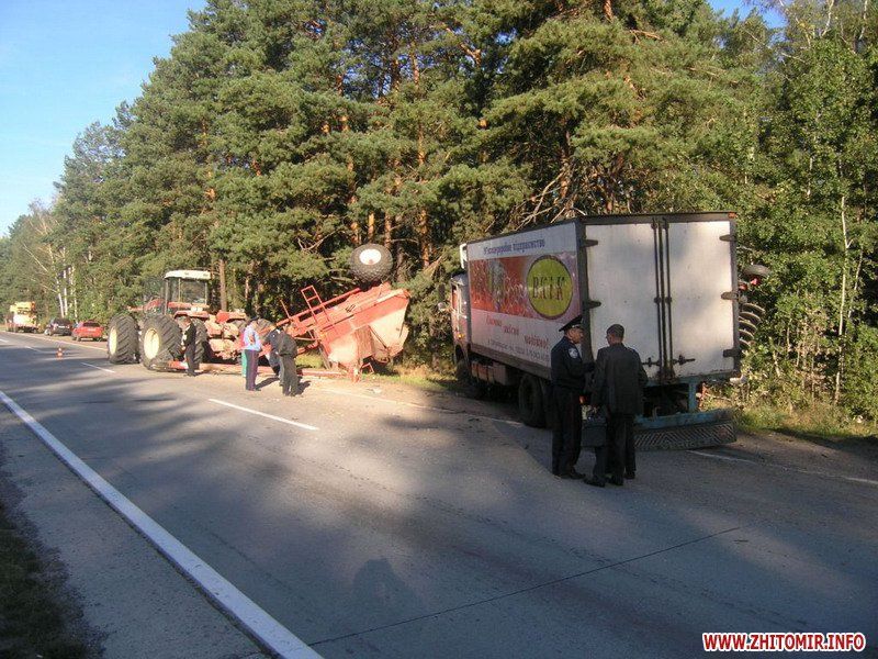 В Житомирской области, на 98-м километре автодороги ''Киев – Чоп'', МАЗ врезался в легковую машину, а затем столкнулся с трактором с сеялкой, сообщает .