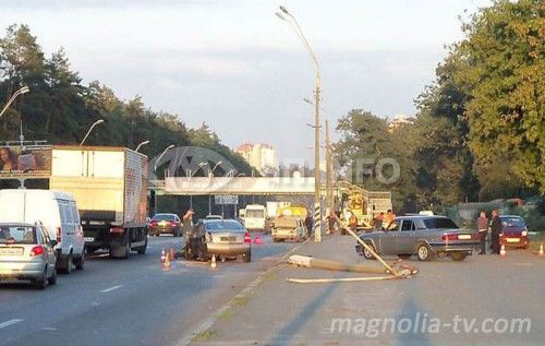 Недавно на Житомирской трассе при подъезде к повороту на «Чайку», в направлении г. Киева, автомобиль Nissan снес электроопору, сообщает .
