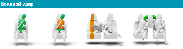 При фронтальном и боковом ударе защита всех критических областей тела – хорошая или удовлетворительная.
