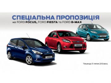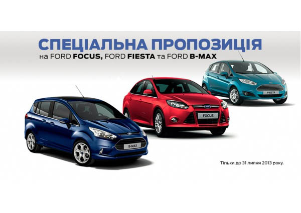 Тільки до кінця липня 2013 року в дилерському центрі «КОЛОС-АВТО» діють неймовірні знижки* на автомобілі Ford Focus, Ford Fiesta, Ford B-Max. На всі автомобілі Ford Fiesta — знижка 10000 грн, на всі автомобілі Ford B-Max — знижка 15000 грн, на всі автомобілі Ford Focus — знижка 15000 грн.