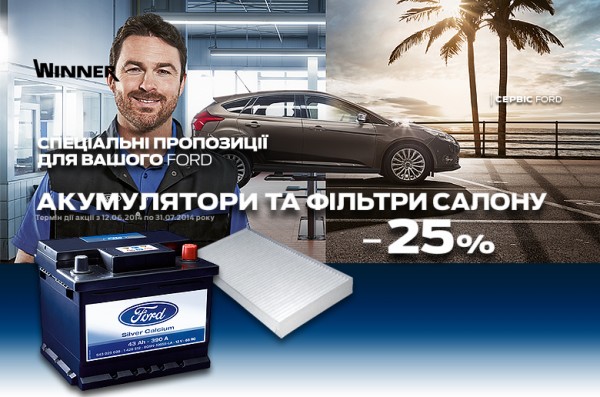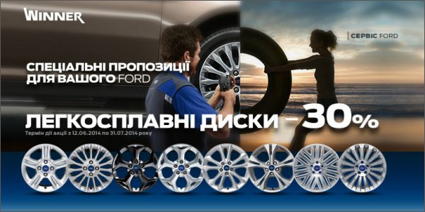 «НИКО Форвард Мегаполис», официальный дилер Ford в Киеве и Киевской области, объявляет о начале летней сервисной акции: скидки 30% на легкосплавные диски и 25% на аккумуляторы и фильтры салона.
