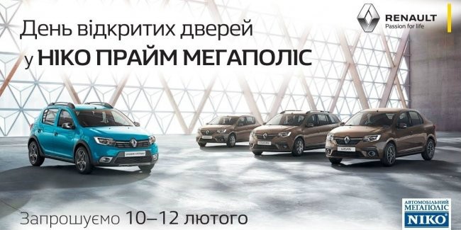 «НИКО Прайм Мегаполис», официальный дилер Renault в Киеве и Киевской области, приглашает посетить автосалон с 10 по 12 февраля, где пройдут «Дни открытых дверей».