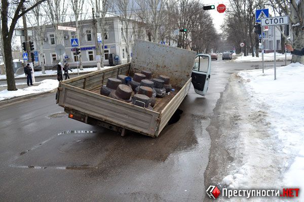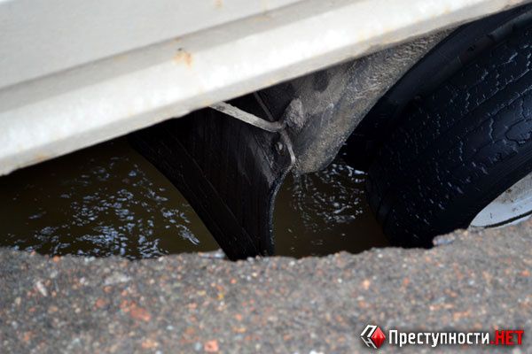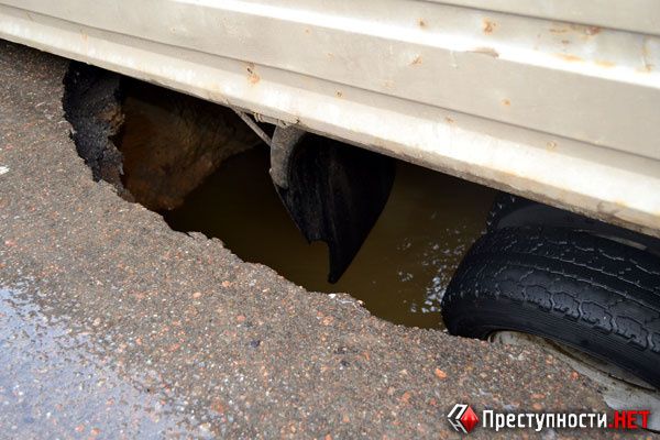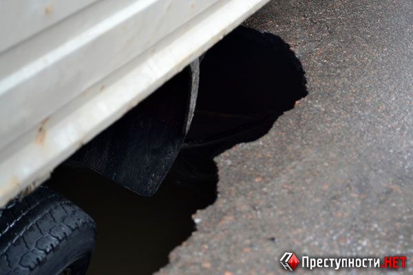 По словам водителя «ГАЗели», на асфальте не было заметно никаких трещин или ям, ничего не указывало на то, что в этом месте может быть такая яма. Автомобиль провалился задним правым колесом и «лег» на раму.