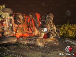 Так, цистерна съезжала с моста по направлению к микрорайону Николаева Варваровка и, по словам очевидцев, в какой-то момент грузовик «повело» в сторону. Водитель попытался притормозить, но цистерна вылетела на обочину и перевернулась как раз в районе блокпоста.
