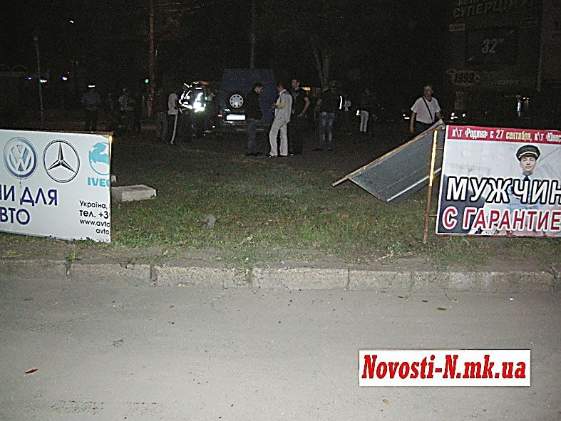 От мощного удара микроавтобус вильнул влево, пробил ограждение с рекламными щитами и вылетел на тротуар. Лишь пол счастливой случайности не пострадал никто из пешеходов, которых на этом перекрестке много даже в вечернее время. BMW, развернувшийся на 90 градусов, остался стоять на перекрестке.