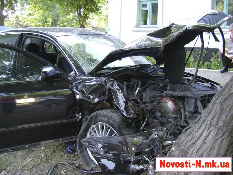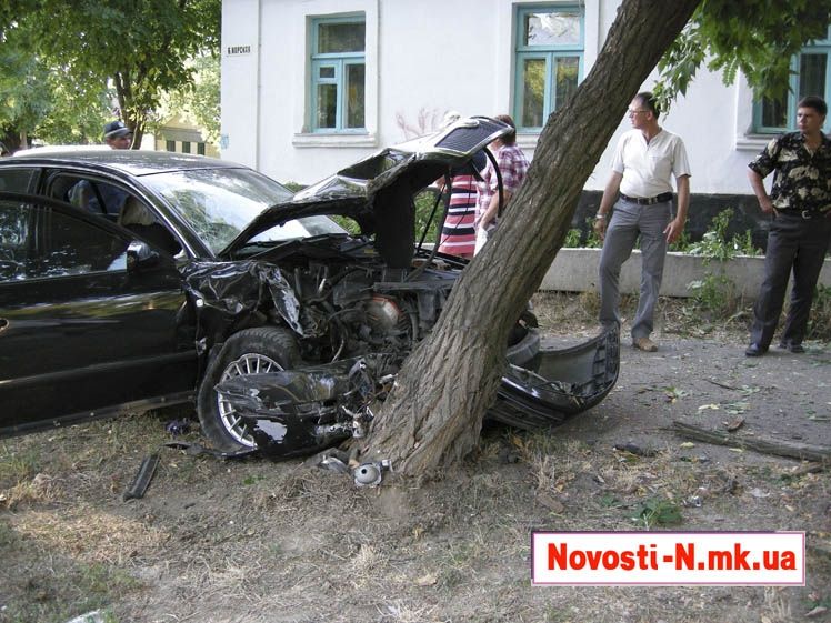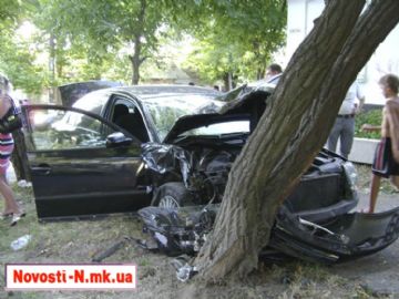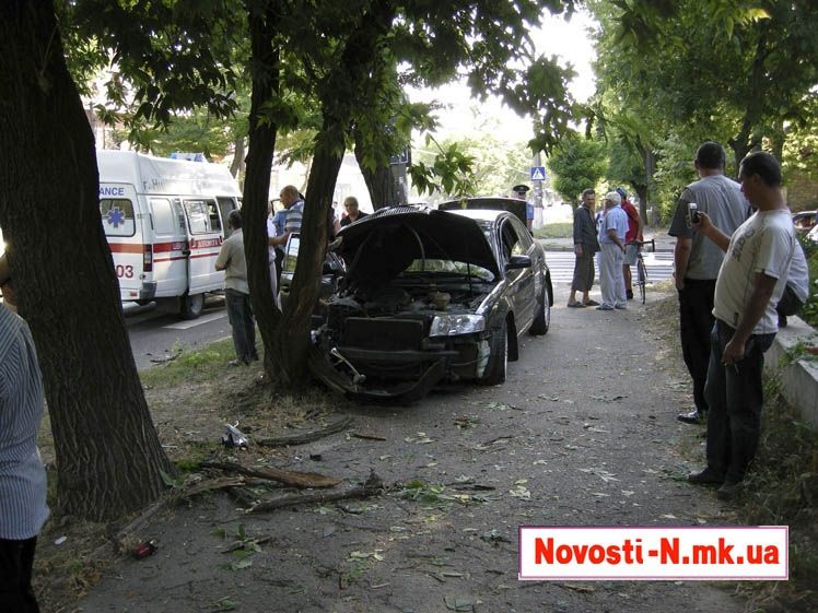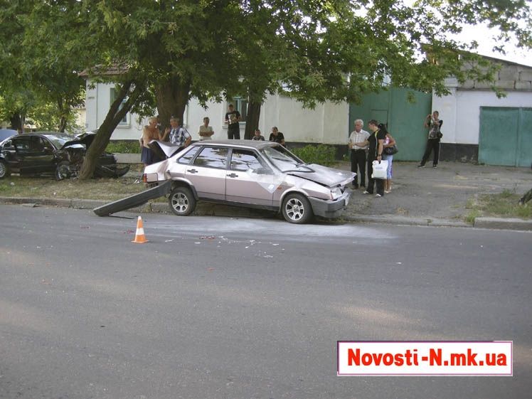 Водитель шедшей следом за грузовиком Skoda, чтобы уйти от столкновения, взял резко влево, вылетел на газон и врезался в дерево, зацепив по пути вращающуюся "девяносто девятую".