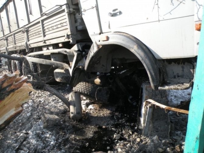 Вследствие ДТП никто не пострадал. А вот материальные последствия весомые: КАМАЗ получил серьезные механические повреждения, часть забора дома № 19 уничтожена, часть — повреждена.