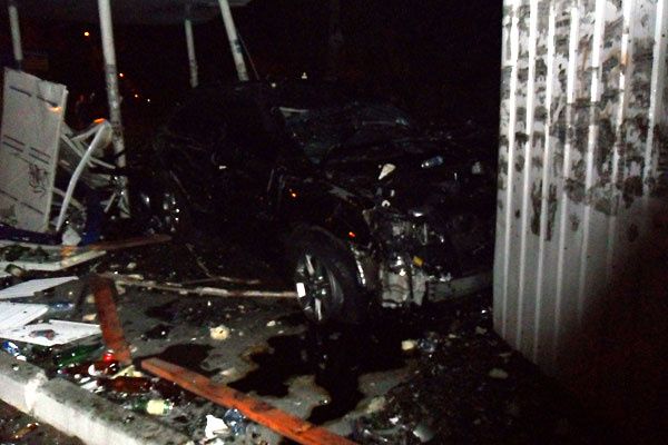 В ночь с пятницы на субботу, 14 апреля, в Николаеве на пересечении улиц Карпенко и Белой произошло ДТП с участием автомобиля Lexus. Джип с большой скоростью двигался по улице Карпенко в направлении улицы Бутомы. На повороте водитель не справился с управлением и вылетел на тротуар, снес холодильник возле киоска и влетел в остановочный комплекс, сообщает .