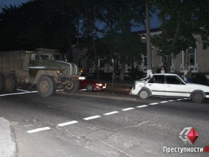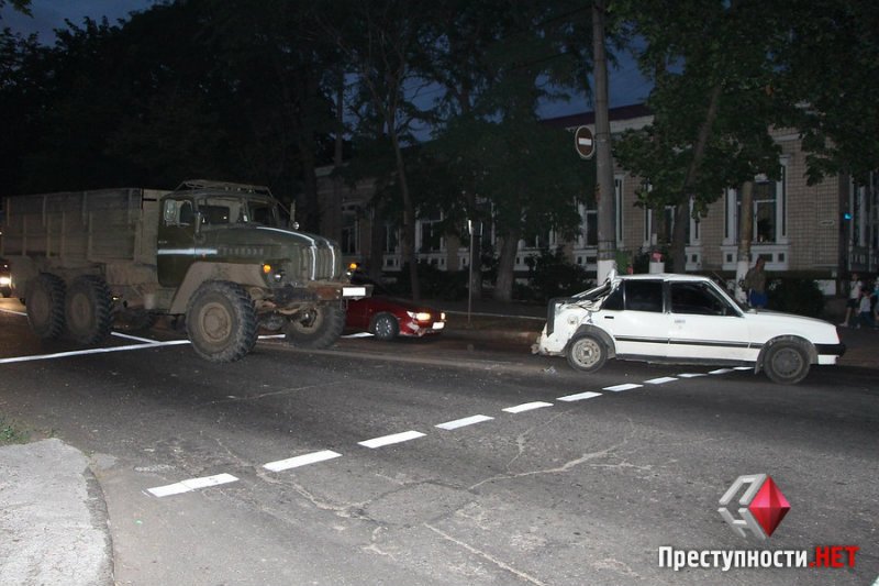 В Николаеве, вечером 30 июня на перекрестке улиц Большая Морская и Пушкинская произошло ДТП – столкнулись легковой автомобиль Opel и военный грузовик «Урал», сообщает .