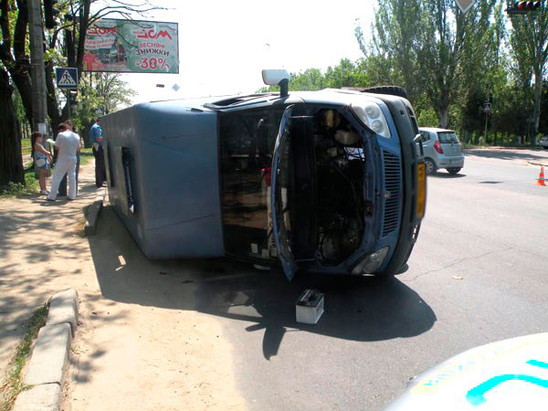 По предварительным данным 36-летняя жительница города Николаева, передвигающаяся на легковом автомобиле по проспекту Октябрьскому в сторону Широкой Балки, выехала на перекресток на запрещающий красный сигнал светофора, где и совершила столкновение с автобусом «Рута», который выезжал на маршрут №20 с улицы Старокрепостная. В результате столкновения автобус перевернулся.