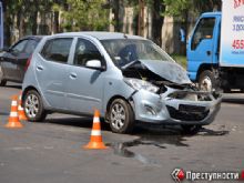 В Николаеве в День победы водитель автомобиля Hyundai совершила дорожно-транспортное происшествие. Приблизительно в 12:25 на перекрестке проспекта Октябрьского и улицы Старокрепостная произошло столкновение маршрутного автобуса «Рута» и автомобиля Hyundai, сообщает .