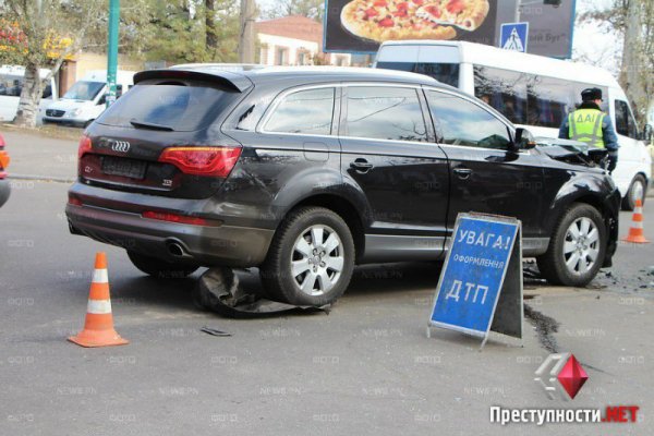 В среду, 29 октября, в г. Николаев в районе пересечения улицы Рюмина и проспекта Ленина произошло ДТП с участием автомобилей Audi Q7 и Hyundai Santa Fe, сообщает .