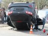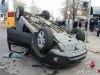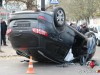 В результате столкновения Hyundai Santa Fe перевернулся на крышу.