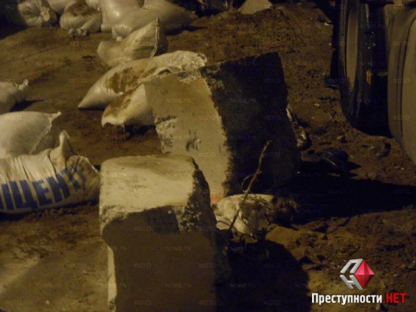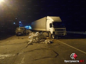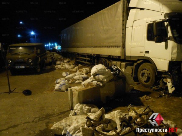 Вечером в воскресение, 2 ноября, приблизительно в 20:30 на въезде в г. Николаев со стороны поселка Мешково-Погорелово седельный тягач «Volvo», перевозивший алкоголь, въехал в блокпост, оборудованный на проезжей части, сообщает .