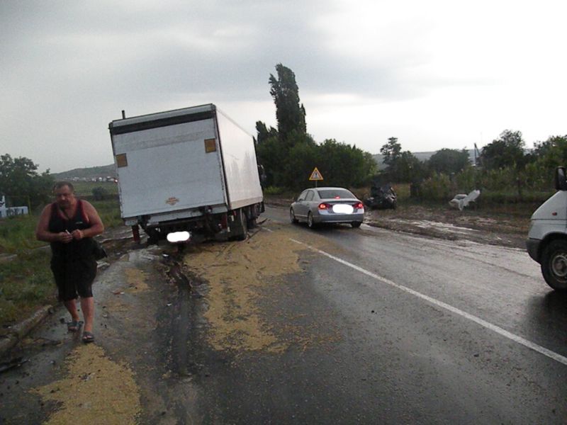 Водитель автомобиля MAN двигался из Николаева в сторону г. Вознесенска. По непонятным причинам он выехал на полосу встречного движения и допустил столкновение с автомобилем ЗАЗ 1103 Славута, который двигался во встречном направлении.
