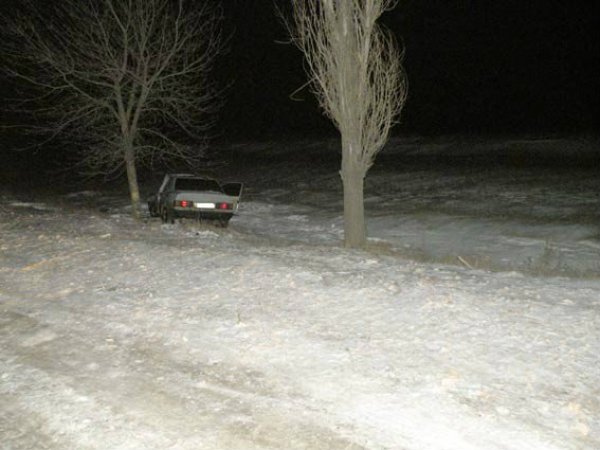 Водитель автомобиля Mercedes-Benz, двигаясь со стороны г. Николаева в направлении г. Новая Одесса не выбрал безопасную скорость движения, не учел погодные условия, а именно снежный накат, обработанный противогололедных материалов, не справился с управлением, в результате чего допустил съезд на правую по ходу движения обочину с последующим съездом в кювет и наездом на дерево.