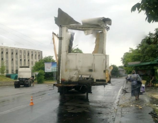 В четверг, 9 июня, в городе Первомайске на ул. Автодоровской прямо на остановку общественного транспорта перевернулась фура, груженая куриными окорочками, сообщает .