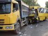 По словам водителя «Мана», именно во время движения вниз, у его автомобиля отказали тормоза. Водитель пытался тормозить о бордюр, но ему помешал припаркованный автомобиль. Он попробовал избежать столкновения и круто вывернул руль, от чего его прицеп, груженный окорочками, перевернулся прямо на остановку общественного транспорта.
