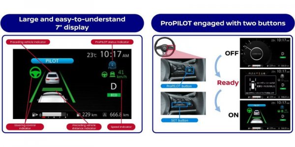 Система способна в полностью автоматическом режиме одновременно управлять акселератором, тормозной системой и рулем. Функция ProPILOT может распознавать различные дорожные ситуации, меняя стиль езды. Активировать функцию беспилотного вождения можно с помощью переключателя на рулевом колесе. Статус работы системы отображается на отдельном дисплее.