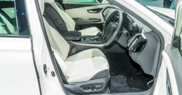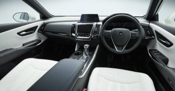 Интерьер сработан по классическим канонам: массивный центральный тоннель, фиксируемый селектор «автомата», традиционные приборы. Нарушает идиллию разве что двухэтажная конструкция медиасистемы с разноформатными дисплеями. Crown имеет кожаную обивку салона, электропривод передних сидений, камеру заднего вида и много других опций. Анонсирована система ITS Connect (Intelligent Transportation System), которая дебютировала два года назад как раз на Крауне нынешнего поколения и позволяет автомобилю обмениваться данными с другими машинами и уличной инфраструктурой. А еще появится система удаленной диагностики, отправляющая в сервисный центр все данные об автомобиле. Колесная база увеличена с 2850 до 2920 мм, поэтому на заднем ряду стало гораздо просторнее, хотя из удобств — только дефлекторы вентиляции по центру.