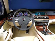 Атмосфера роскоши и современный дизайн интерьера гарантируют ощущение благополучия. При открытой двери салона, взгляд непременно останавливается на металлических эмблемах ALPINA, подсвечивающихся голубым светом. Рулевое колесо SWITCH TRONIC вручную обтянуто кожей LAVALINA наивысшего качества. Стрелки циферблатов приборной панели выполнены в красном цвете, подсветка фона – в синем. Вся существенная информация отображается на жидкокристаллическом мониторе Black Panel. Классическая отделка салона эксклюзивным лавровым деревом ALPINA «Мюрте» с изысканным узором, чьи редкие экземпляры встречаются только на тихоокеанском побережье США, обеспечивает теплую атмосферу.
