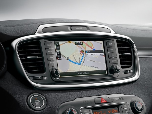 Салон Sorento предлагает высокий уровень комфорта. Удобные сиденья, опциональный панорамный люк в крыше, мультимедийная навигационная система и звук от Harman Kardon для вашего удовольствия.