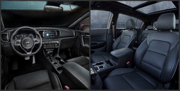 В салоне сверхспортивный из всех Kia Sportage будет иметь: рулевое колесо с кожаной отделкой с усеченным нижним сектором и подогревом, хромированные ручки дверей и алюминиевые накладки на педалях. Комфорт водителю и пассажирам обеспечат сидение водителя с электроприводом, настраиваемое в 10 направлениях (в 8 направлениях для переднего пассажира) и с вентиляцией; функцией регулировки наклона задних сидений. В комплектацию также входят панорамная крыша; светодиодная подсветка салона; современная аудио-визуальная система навигации с 8-дюймовым экраном и камерой заднего вида; звуковая система JBL Sound system на 320 ватт с восемью динамиками, внешним усилителем и технологией восстановления качества музыки Clari-Fi, беспроводное зарядное устройство для гаджетов. Также в комплектацию включены функция автоматического открывания багажника Smart Power Tailgate; система помощи при парковке; электронный стояночный тормоз.