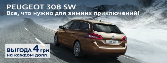 Новый Peugeot 308 SW еще доступней – экономьте 4 грн. на каждом долларе*!