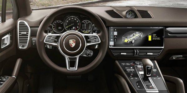Внешне гибридный Porsche Cayenne можно отличить от стандартного кроссовера благодаря эмблемам E-Hybrid, суппортам тормозных механизмов зеленого цвета и порту для подключения зарядочного кабеля. Кроме того, кроссовер получил проекционный дисплей, а также усовершенствованный круиз-контроль, работающий на основе GPS-данных.