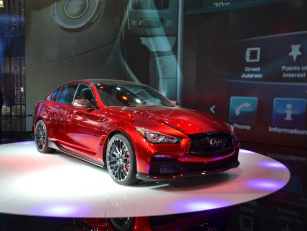 Прототип Q50 Eau Rouge, представленный на автосалоне в Женеве, назван в честь знаменитого поворота на гоночной трассе Спа-Франкоршам в Бельгии. Под капотом Q50 Eau Rouge установлен 3,8-литровый V6 с двумя турбинами, который был позаимствован у суперкара Nissan GT-R вместе с семиступенчатой коробкой передач и системой полного привода. С таким вооружением 568-сильный седан разгоняется до первой сотни менее чем за четыре секунды, а расчетная максимальная скорость составляет около 290 км/ч.