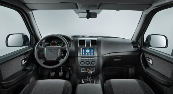 Интерьер новых автомобилей стал более современным и комфортным. Внутреннее пространство Патриота — это просторный салон, выполненный из приятных на ощупь материалов, с дополнительным набором функций, включая современную мультимедийную систему с 7-ми дюймовым сенсорным дисплеем с возможностью воспроизведения Full HD видео, AM/FM/MP3, с USB/AUX-портами, 4 динамиками, компасом, парктроником с камерой заднего вида, навигационной системой. Дисплей мультимедийной системы обеспечивает отличную читаемость и широкий угол обзора, что позволяет переднему пассажиру также следить за показаниями. Современный интерьер дополняют новая комбинация приборов с датчиком температуры наружного воздуха, маршрутный компьютер, новые плафоны с функцией «вежливый свет».