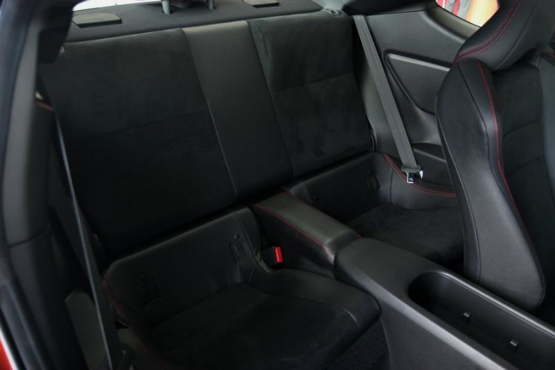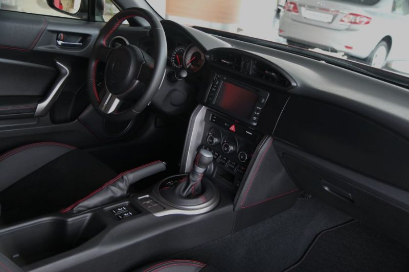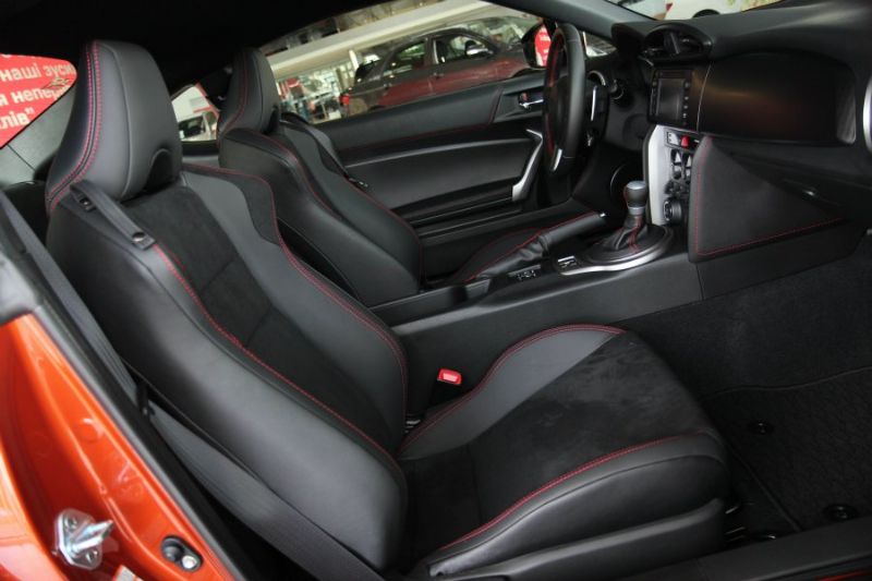 В салоне также все пропитано спортивным духом. Здесь низкая и прямая посадка, когда ноги находятся практически параллельно полу. Сиденья с развитой боковой поддержкой сразу хорошо фиксируют тело. Рассчитаны они на людей средней комплекции, поэтому большинству потенциальных покупателей GT86 должно быть удобно. Задние места здесь, конечно же, меньше и компактнее, но для короткой городской поездки вполне подойдут.