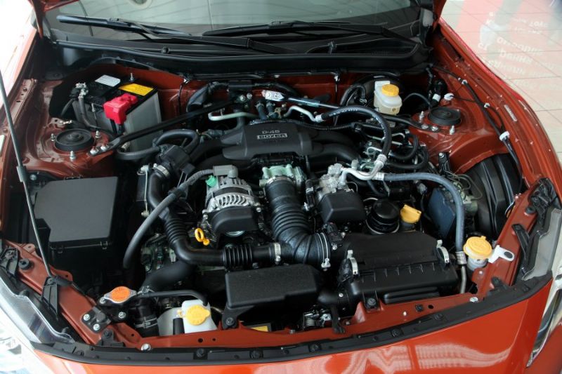 Впереди у Toyota GT86 установлена подвеска МакФерсон, сзади – многорычажная конструкция. GT86 оснащен сверхлегким горизонтально-оппозитным двигателем объемом 2,0 литра с технологией комбинированного впрыскивания Toyota D-4S, которая обеспечивает двигателю максимальную мощность в 200 л. с. и крутящий момент 205 Ньютоно-метров. В итоге до первой сотни купе GT86 с механической КПП может разогнаться за 7,6 сек. Результат автомобиля с «автоматом» будет несколько медленнее – 8,2 сек. Максимальная скорость достигает 226 км/ч. Но для достижения таких результатов владельцу необходимо заливать бензин не хуже А98. Любители активной езды наверняка оценят и задний самоблокирующийся дифференциал.
