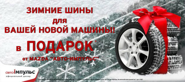 * Акция проходит в салоне компании «Авто-Импульс Восток». Под подарком имеется в виду возможность приобретения вместе с каждым автомобилем Mazda комплекта зимних шин (четыре единицы, без автомобильных дисков) за 1 грн. с НДС.