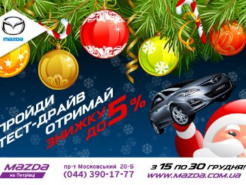 С 15 декабря в автосалоне «Mazdа на Петровке» стартует сезон новогодних тест драйвов и подарков!.