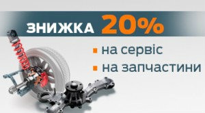 Лише у період з 20 грудня 2015 р. по 10 січня 2016 р. Ви маєте унікальну можливість отримати знижку 20% на роботи сервісу, 20% − на запчастини та 5% − на аксесуари!